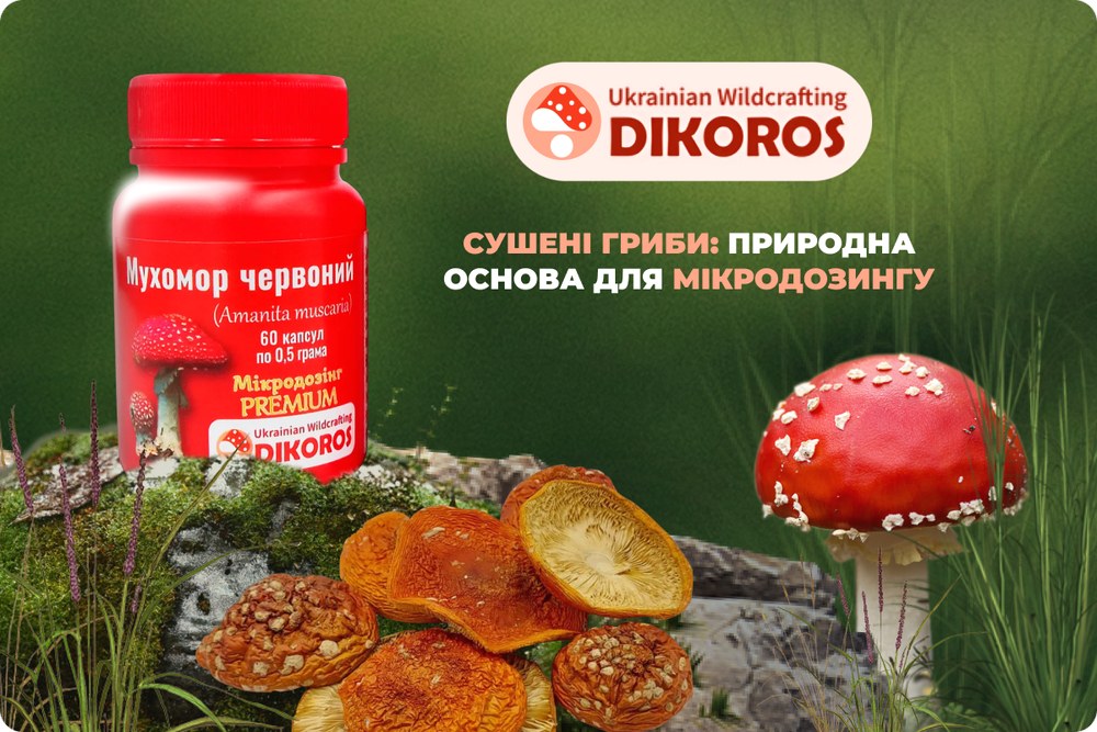Чи може сушений мухомор, чага, лисички та траметес стати м’якою альтернативою класичному мікродозингу? Відповідь від Дікорос