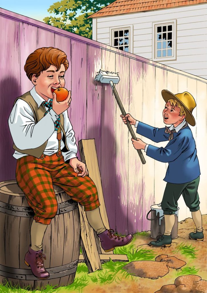 Хитрість і брехливість. Том легко може обдурити, коли йому вигідно. Наприклад, коли він змусив хлопців білити паркан – і ще й подарунків за це назбирав.