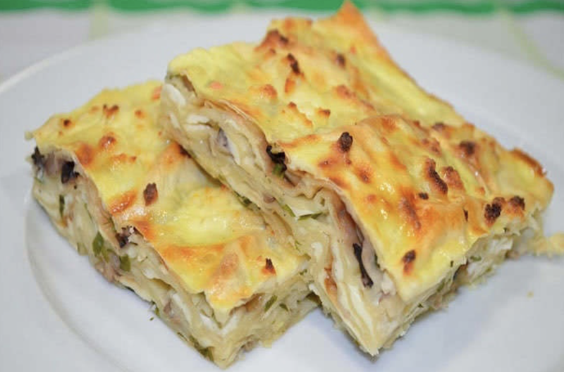 Наприклад, дуже популярною є грибна запіканка з лаваша і курячого філе, де до м’яса додають обсмажені печериці.
