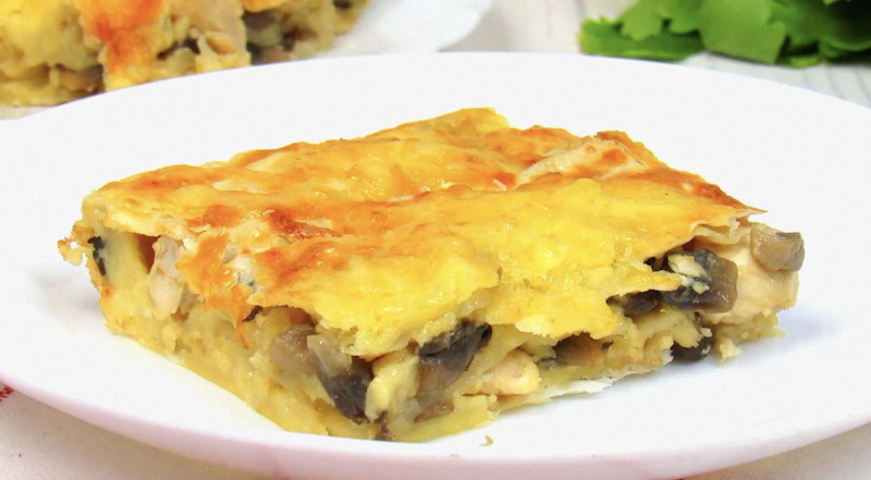 Наприклад, дуже популярною є грибна запіканка з лаваша і курячого філе, де до м’яса додають обсмажені печериці.