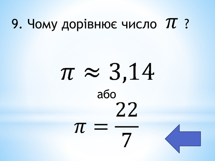 - π ≈ 3.14 можна замінювати на 3.1416 або навіть 3 — коли треба швидко “на око”;