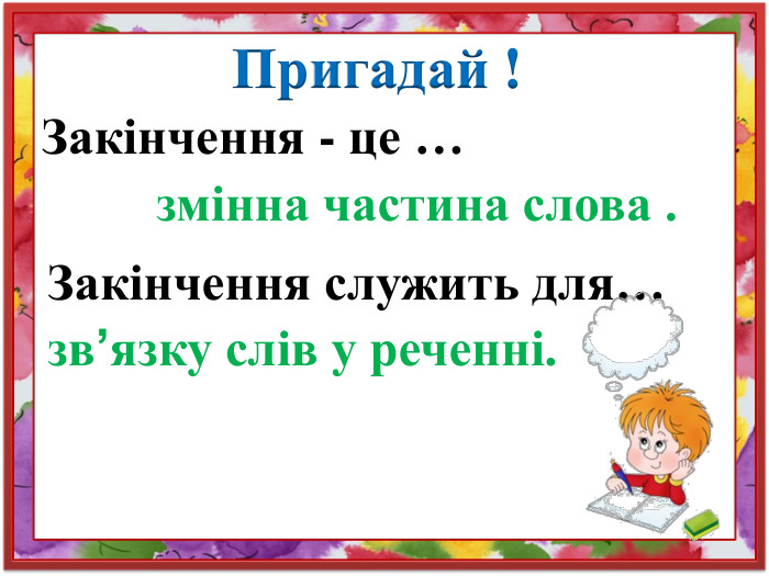 Такі прості принципи допоможуть визначити, яке закінчення у слові.